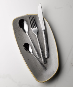 Comas Kodai Vintage presenta il Cucchiaio Riso, un connubio di eleganza e tradizione per completare il tuo servizio di tavola con un tocco di raffinatezza. Realizzato in acciaio inox di alta qualità con finitura vintage, questo cucchiaio da riso si distingue per il suo design ricercato e la sua leggerezza. La linea Kodai Vintage trae ispirazione dai rituali orientali, reinterpretandoli in chiave moderna e versatile. Il manico leggermente martellato dona un tocco di artigianalità e unicità al cucchiaio, mentre la finitura vintage lo rende un elemento perfetto per ristoranti di alto livello che desiderano offrire un’esperienza culinaria impeccabile. Il Cucchiaio Riso Kodai Vintage è robusto e resistente, adatto ad un uso quotidiano intensivo. La sua forma ergonomica garantisce una presa comoda e sicura, mentre la superficie liscia e lucida facilita la pulizia.