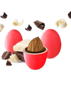 Ingredienti; Cioccolato bianco (40%) (zucchero, latte intero in polvere, burro di cacao. Emulsionante: lecitina di soia. Aroma naturale di vaniglia), zucchero, cioccolato fondente (19%) (zucchero, pasta di cacao, burro di cacao. Emulsionante: lecitina di soia. Aroma naturale di vaniglia), mandorle tostate (18%), amido di riso, maltodestrina. Coloranti: E170, E120, E100, E101, E129*. Agenti di rivestimento: cera carnauba (E903), cera d’api (E901).
