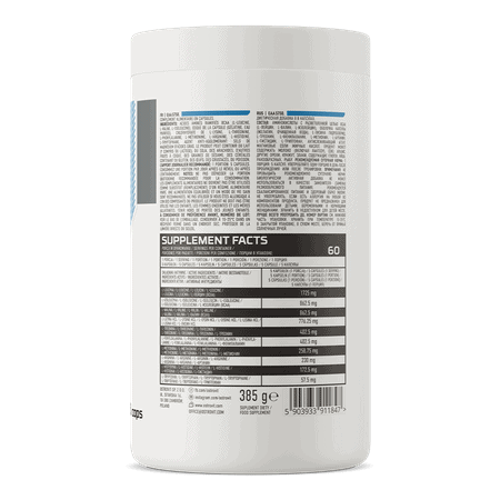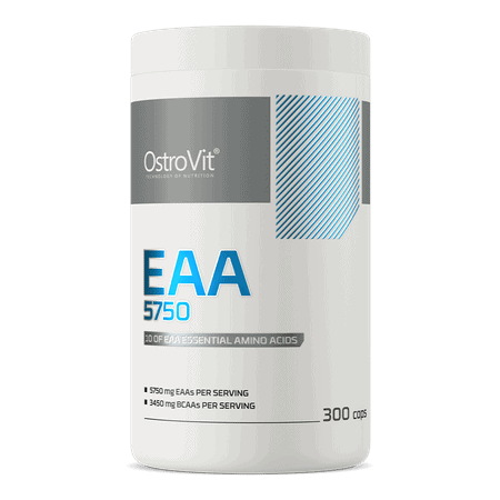 Gli EAA da aminoacidi essenziali sono un gruppo di composti chimici organici (amminoacidi), che sono i componenti di base per la costruzione di peptidi e proteine. Sfortunatamente, il nostro corpo non è in grado di sintetizzarli (produrli) da solo, quindi è importante fornirli con una dieta adeguata o con l’aiuto di integratori. La composizione comprende un complesso BCAA, ovvero tre aminoacidi a catena lunga: leucina, valina e isoleucina, oltre a composti come: lisina, treonina, fenilalanina , metionina, arginina, istidina e triptofano. Il complesso OstroVit EAA 5750 mg, grazie agli aminoacidi proteici supporta la rigenerazione e i processi anabolici delle nostre cellule muscolari. I componenti dell’integratore contribuiscono al sostegno e partecipano direttamente a una serie di processi vitali del corpo, supportando il sistema immunitario, nervoso e digestivo. L’integrazione di aminoacidi nelle persone che si allenano regolarmente può avere un effetto molto positivo sull’aumento delle prestazioni atletiche e della resistenza. Ecco tutti gli aminoacidi che puoi trovare nel nostro OstroVit EAA 5750 mg: