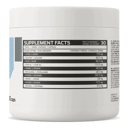 EAA dagli amminoacidi essenziali inglesi è un gruppo di composti chimici organici (amminoacidi), che sono i mattoni di base di peptidi e proteine. Purtroppo il nostro organismo non è in grado di sintetizzarli (produrli) da solo, per questo è molto importante fornirli con una corretta alimentazione o con l’ausilio di integratori. La composizione comprende un complesso BCAA, cioè tre amminoacidi a catena lunga: leucina, valina e isoleucina, e composti quali: lisina, treonina, fenilalanina, metionina, arginina, istidina e triptofano. Il complesso OstroVit EAA, grazie al contenuto di aminoacidi proteici, supporta la rigenerazione e i processi anabolici delle nostre cellule muscolari. I componenti dell’integratore contribuiscono al supporto di una serie di processi vitali nel corpo, sostenendo il sistema immunitario, nervoso e digestivo.