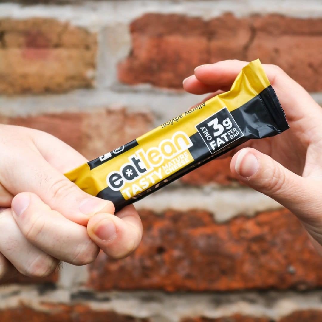 Comode barrette di formaggio da 30 g con un delizioso sapore di cheddar maturo, perfetto per tutti i tuoi pasti. Le Snack Bar Eatlean Tasty hanno la metà dei grassi contenuti nel classico cheddar, è inoltre più ricco di proteine e meno calorico
