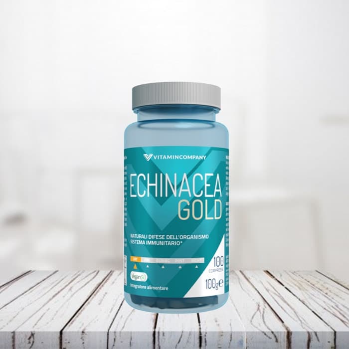 ECHINACEA GOLD di VitaminCompany contiene estratti vegetali selezionati per il supporto del sistema immunitario. Indicato per adulti anche sportivi. L’echinacea aiuta le naturali difese dell’organismo ed inoltre è specifica per la funzionalità delle prime vie respiratorie. L’estratto di acerola, invece, oltre a favorire le difese immunitarie, ha azione di sostegno e ricostituente per l’organismo. ECHINACEA GOLD apporta anche *vitamina C che contribuisce alla normale funzione del sistema immunitario e aiuta a proteggere le cellule dallo stress ossidativo. ECHINACEA GOLD non contiene ingredienti di origine animale ed è quindi indicato anche per vegetariani e vegani.