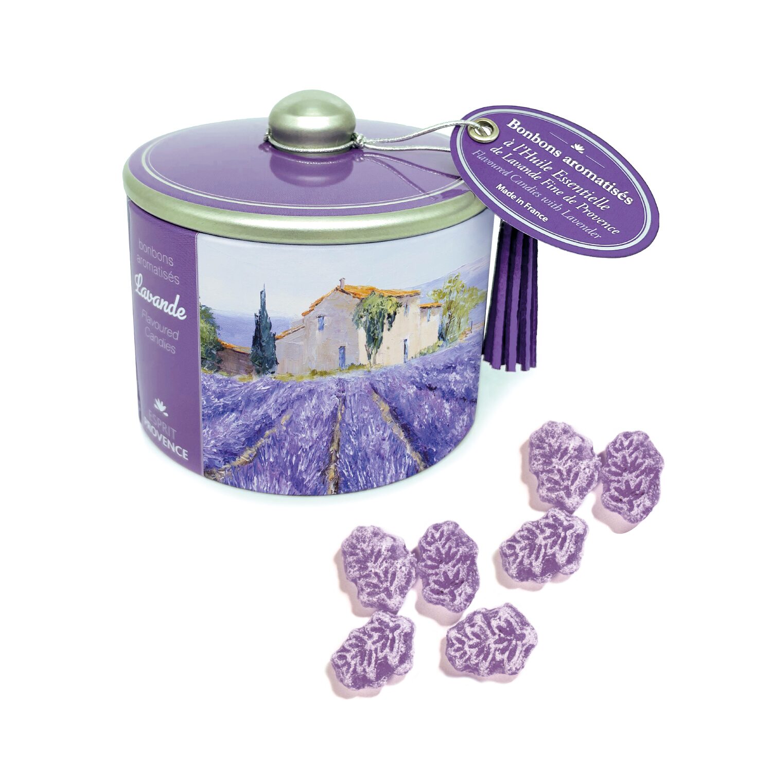 CONFEZIONE: le caramelle all’olio essenziale di lavanda di Esprit Provence sono conservate in una caratteristica lattina di metallo, disegnata con stampe che ricordano le piante della Provenza. Il peso netto del prodotto è pari a 85 grammi.