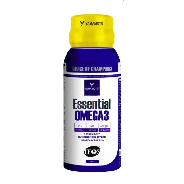 Essential Omega3 IFOS™ è l’integratore di Yamamoto® Nutrition a base di olio di pesce ricco in Omega 3 titolato al 36% in EPA e 24% in DHA e certificato IFOS™, pensato per fornire all’organismo acidi grassi di primissima qualità ricavati dall’olio di pesce. L’olio di pesce è ricco in acidi grassi essenziali della serie Omega-3, come EPA (acido eicosapentaenoico) e DHA (acido docosaesaenoico), nutrienti essenziali per sostenere la salute del cuore, delle articolazioni, del cervello e degli occhi.
