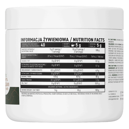 OstroVit Oat Fiber VEGE è un prodotto creato per le persone per le quali una dieta sana è una priorità. Una confezione del prodotto contiene fino a 40 porzioni di fibre, che con un’integrazione regolare sono sufficienti per 20 giorni di utilizzo. Alla confezione è attaccato un comodo metro a nastro, grazie al quale è possibile misurare con precisione la quantità necessaria di prodotto.