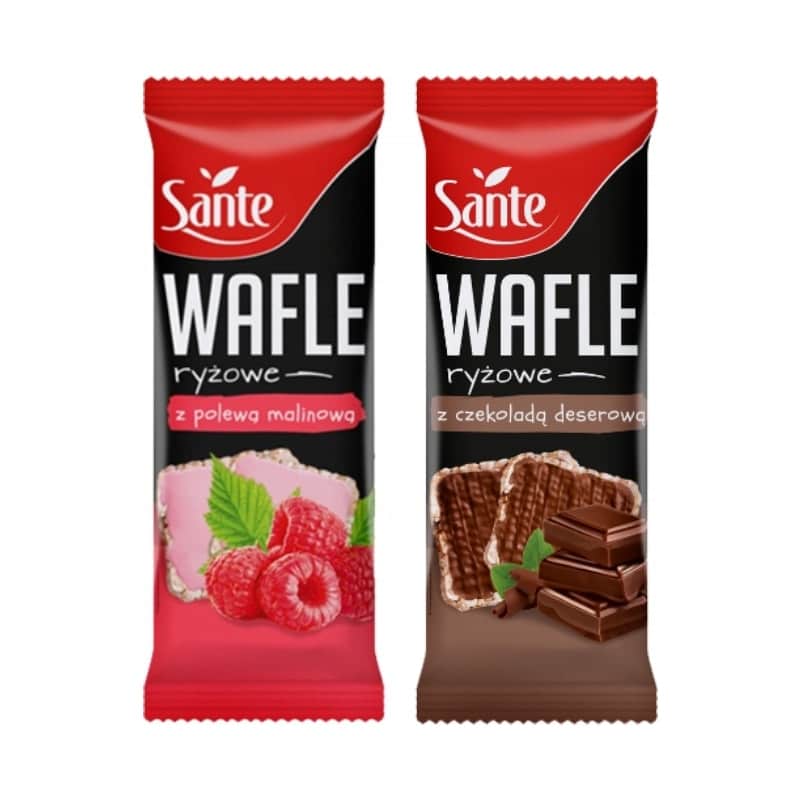 Gallette di riso Sante con salsa di lamponi, 66g. Uno spuntino sano per ogni momento della giornata.