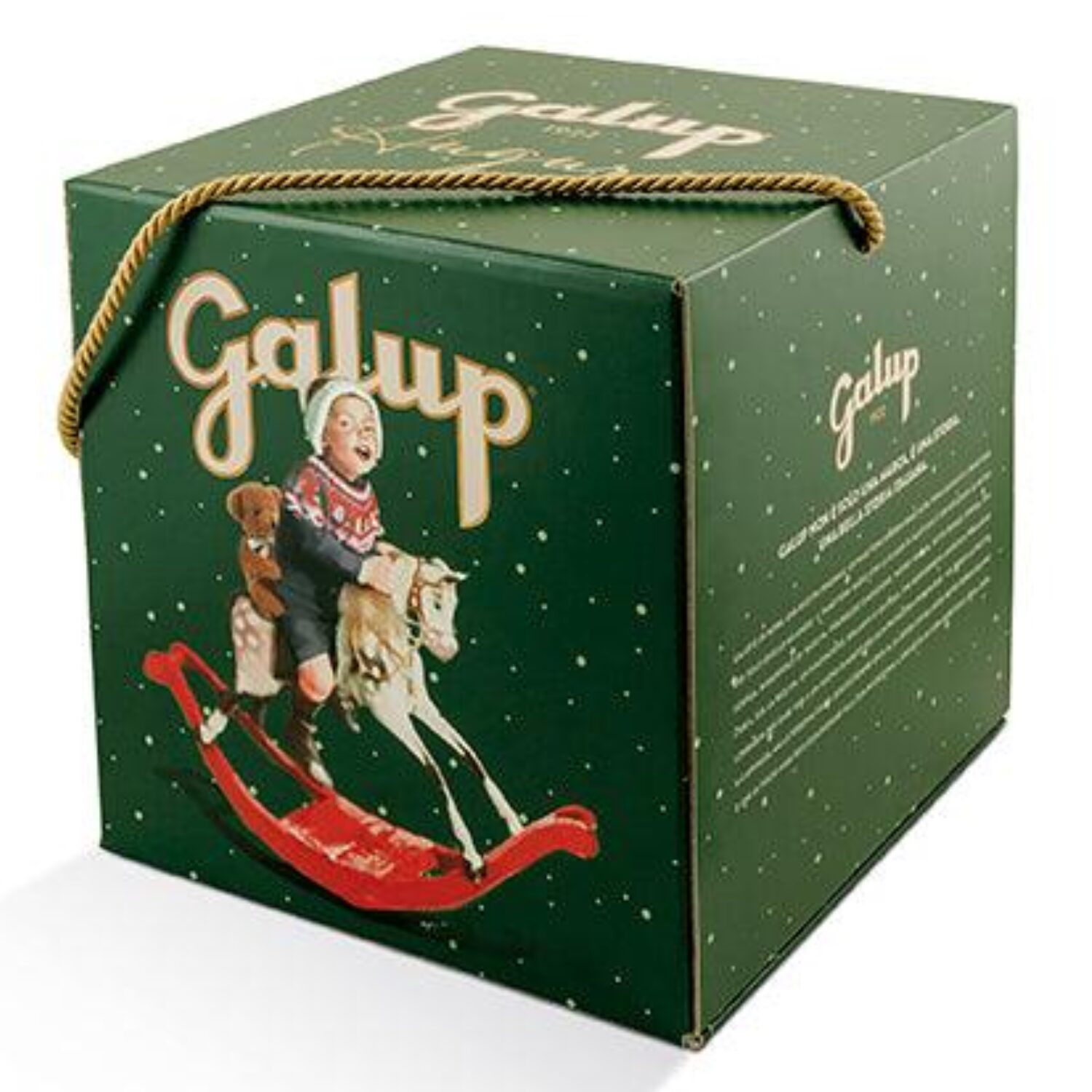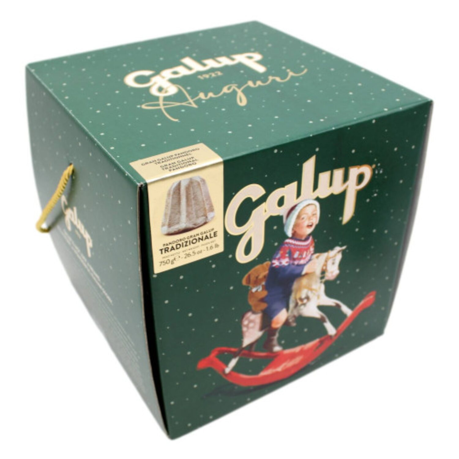 - “Pandoro Gran Galup Tradizionale”: panedoro con zucchero a velo prodotto da forno a lievitazione naturale, confezione in cartone rigido con manico (750 grammi). Prodotto in Italia.