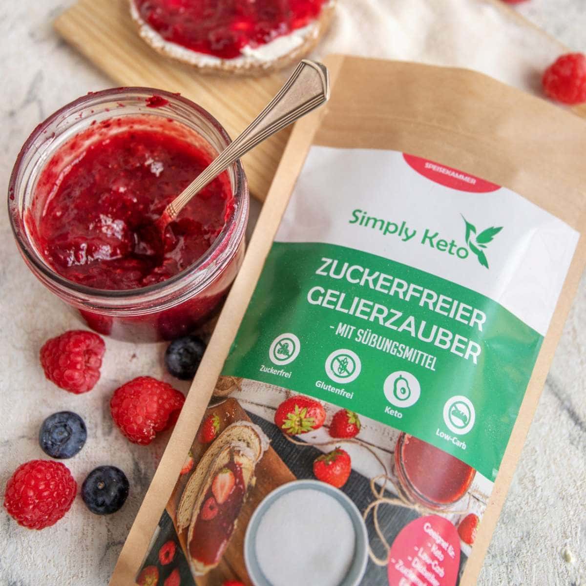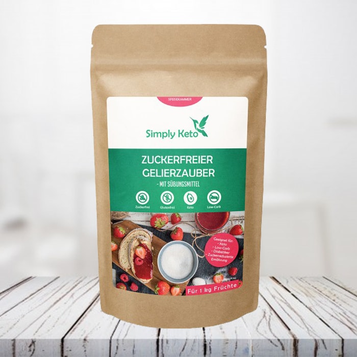 Il nostro Gelierzauber è completamente senza zucchero e senza glutine e poiché è addolcito solo con eritritolo e stevia, contiene solo 0,5 g di carboidrati utilizzabili per 100 g.