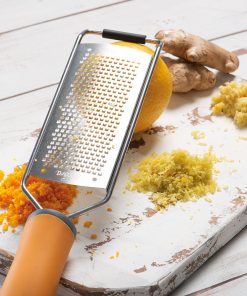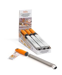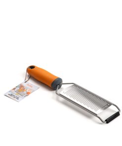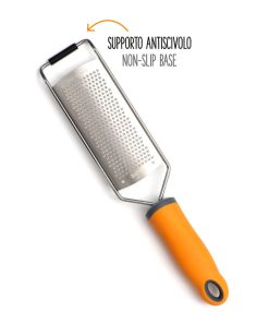 Utensile da cucina, con lama in acciaio inox, supporto antiscivolo e manico ergonomico. Indispensabile per ogni tipo di preparazione culinaria. La lama consente di ricavare scaglie sottili: è perfetta per grattugiare formaggi, spezie come noce moscata, cannella e chiodi di garofano ed ogni tipo di buccia di agrumi.