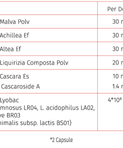 L’innovativa formulazione a base di 12 Estratti Vegetali arricchita con Inulina, Mannitolo e Fermenti Lattici apporta una rapida stimolazione della peristalsi intestinale.