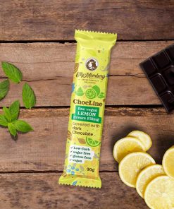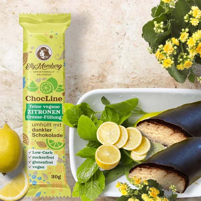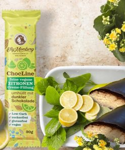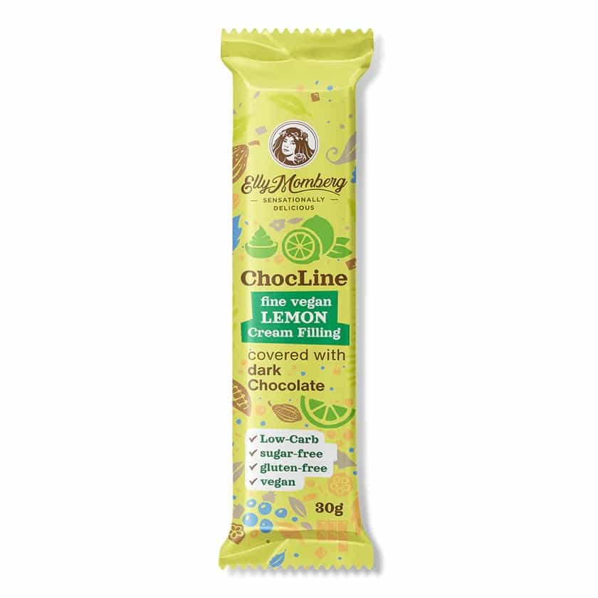 Fine ripieno di crema vegana al limone ricoperta di cioccolato fondente – a basso contenuto di carboidrati, vegano senza zuccheri aggiunti, senza glutine.
