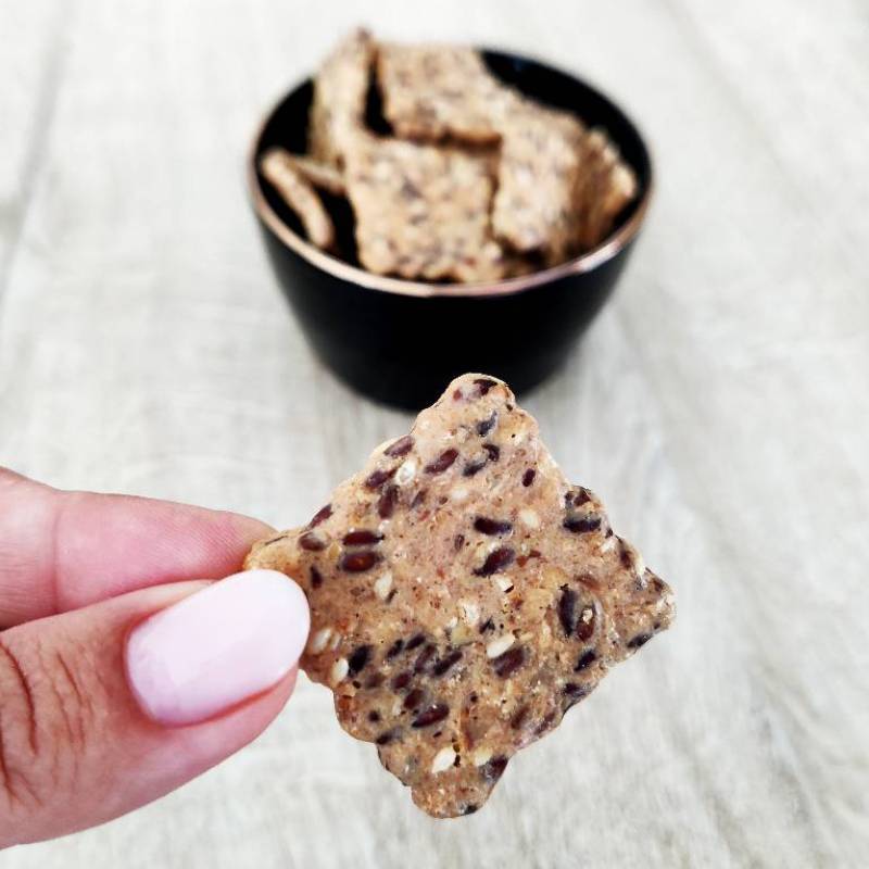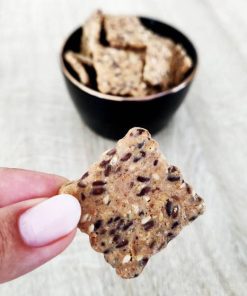 Ingredienti: semi di lino, nocciole 20%, farina di mandorle 13%, semi di girasole, semi di sesamo, olio d’oliva, albume d’uovo , sale, spezie. Conservare in un luogo fresco e asciutto