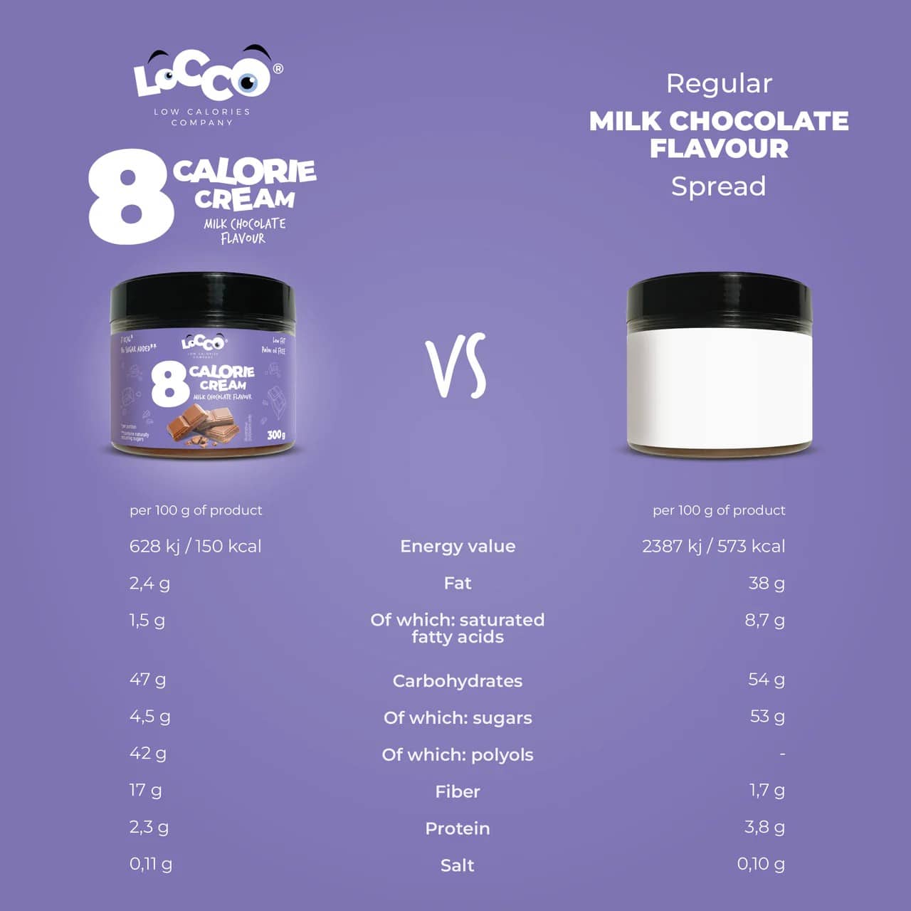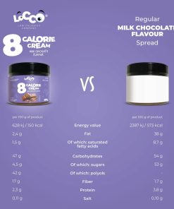 Un cucchiaino del nostro cioccolato al latte spalmabile LoCCo 8 kcal contiene solo 8 kcal, rendendolo un’aggiunta perfetta a qualsiasi pasto o spuntino. Non devi rinunciare ai tuoi dolci preferiti solo perché vuoi rimanere magro: aggiungi un po’ di sapore ai tuoi cibi con il nostro cioccolato al latte spalmabile LoCCo da 8 kcal.