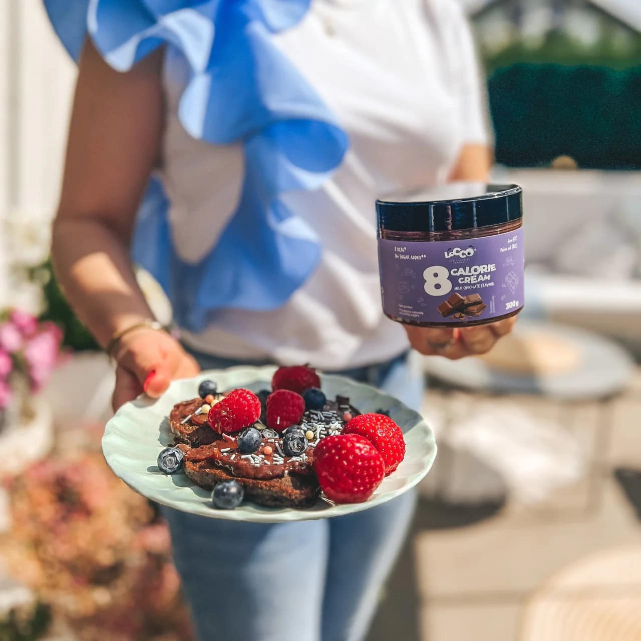 Il cioccolato al latte spalmabile LoCCo 8 kcal è l’aggiunta perfetta alla colazione, al dessert o allo spuntino. Questo prodotto contiene solo 8 kcal per porzione di un cucchiaino e meno di 3 g di grassi per 100 g di prodotto. Inoltre non ha zuccheri aggiunti ed è privo di olio di palma e glutine. La parte migliore? Puoi gustarlo in abbinamento a pancake, waffle o toast, oppure puoi aggiungerlo a torte, gelati e tanti altri dei tuoi dessert preferiti!