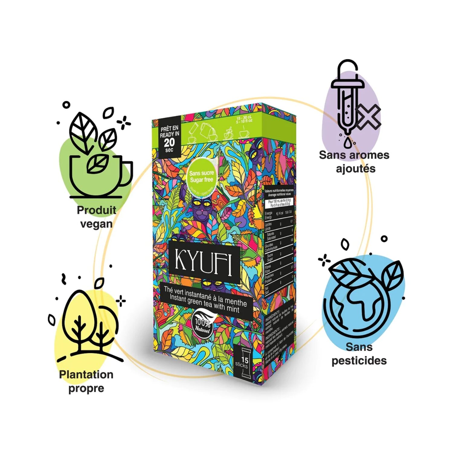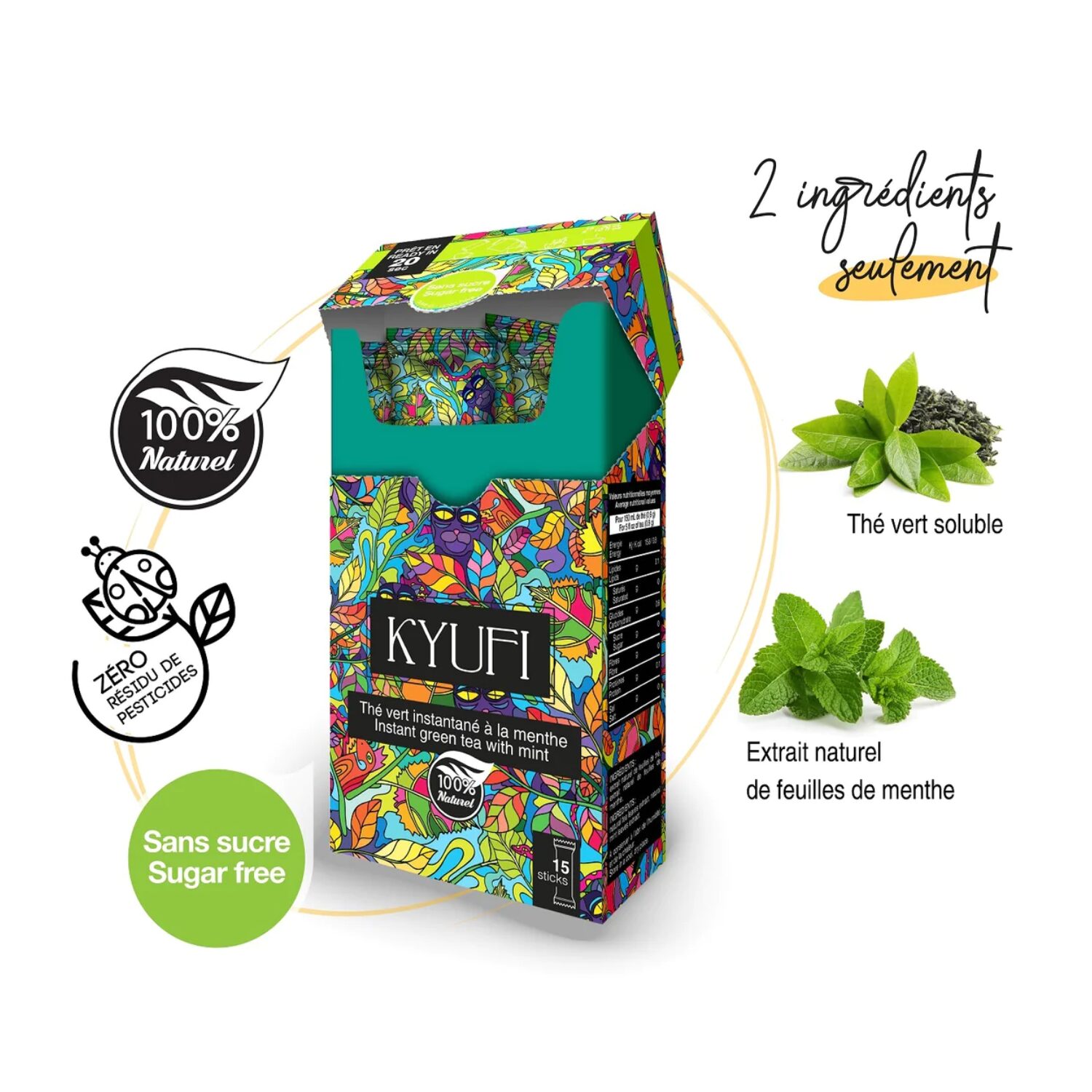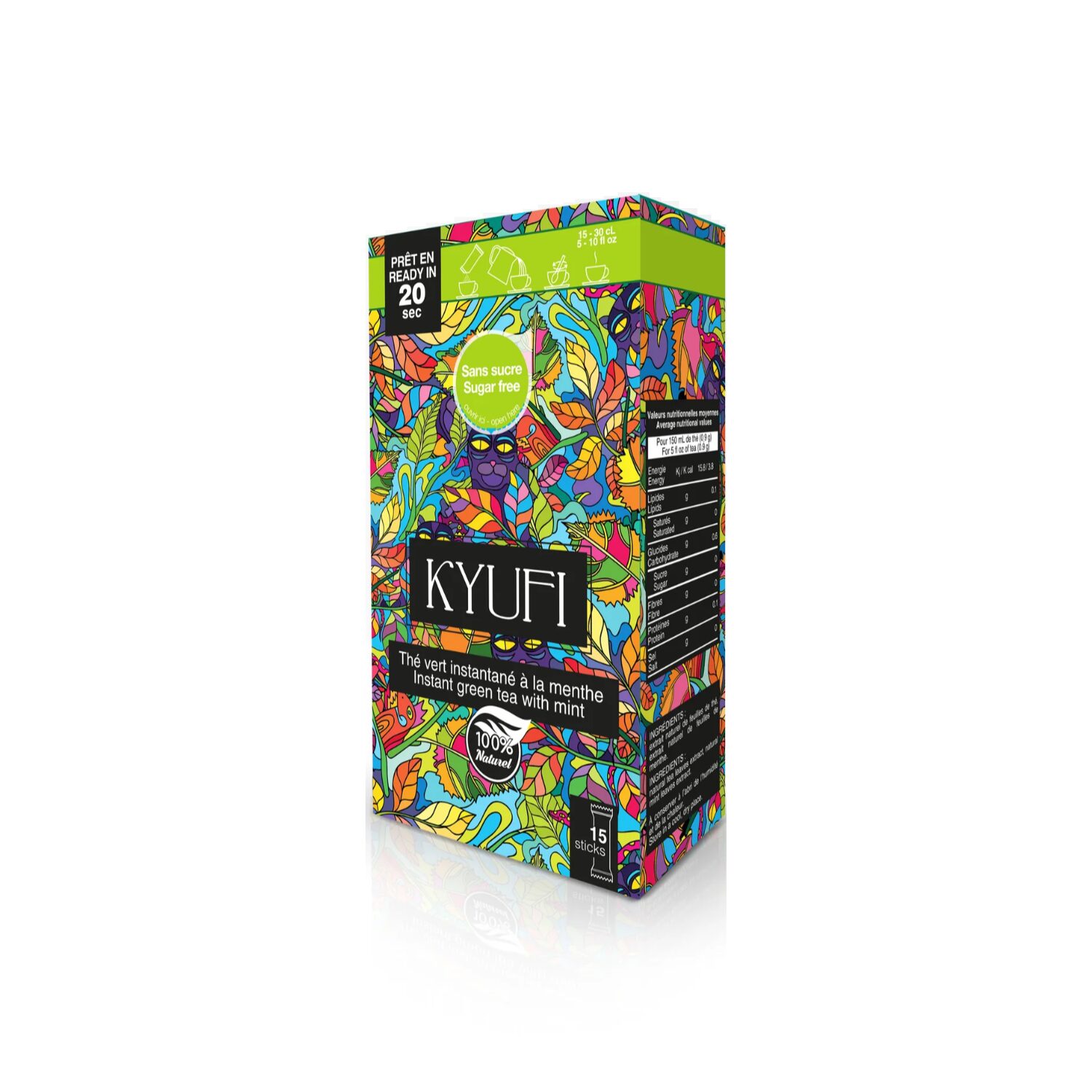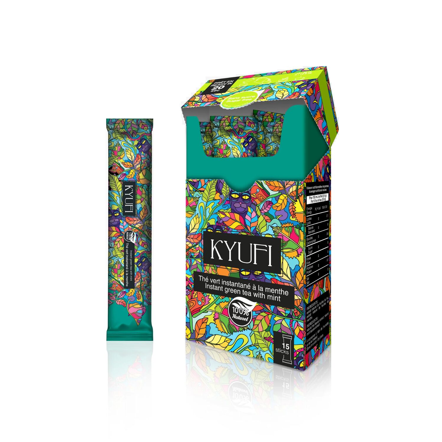 Kyufi® | Tè Verde Istantaneo alla Menta Senza Zucchero | Tè Verde Menta Stick | Tè Verde Solubile in 20 Secondi | Cinese Tè Verde & Menta – 15 Stick di Tè (13.5 Gr)