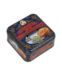 DETTAGLI: la spedizione comprende 1 lattina in metallo apribile e riutilizzabile con all’interno 250 grammi netti di biscotti incartati in sacchetti separati.