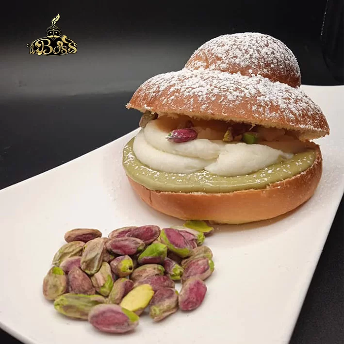 Brioche siciliane col tuppo, la ricetta originale (di quelle vere) per gelato e granita. Box prodotti La bomba co tuppo. La Panzuta è sicuramente un dolce peccaminoso pensato per clienti sfiziosi, prende il suo nome dalla classica forma (Panzona) posta nella parte superiore. Questo dolce è un omaggio alla mia Sicilia e ai suoi colori: il verde del pistacchio e il bianco della nostra squisita ricotta di pecora con gocce di cioccolato. La nostra Panzuta è una brioche lievitata, quindi con la classica forma con tuppo (tappo superiore) con doppia farcitura di crema di pistacchio e ricotta di pecora 100% in sac a poche. Realizzata utilizzando la tecnica tradizionale che comprende una lievitazione di circa 18 ore. La struttura della panzuta è morbida è setosa. Da consumare in famiglia o con gli amici dilettandovi alla farcitura fai da te. Le nostre Panzute ti verranno consegnate con sistema termico salva freschezza. Prova anche la nostra specialità il Kit Cannoli Mignon di ricotta. La Panzuta è un dolce peccaminoso pensato per clienti sfiziosi, un omaggio alla Sicilia e ai suoi colori: il verde del pistacchio ed il bianco della ricotta. Dove posso acquistare la migliore brioscia con il tuppo farcita con ricotta di pecora e pistacchio? Dal Boss ovviamente.