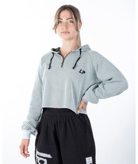 La felpa con cappuccio LP combina il comfort casual del classico loungewear con un’elegante miscela a coste, materiale intrecciato Boston, fornisce una sensazione morbida e leggera e una maggiore potenza di ventilazione di pre e post allenamento in palestra per una sensazione asciutta e confortevole.