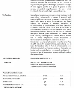 Di sapore sapido, armonico, gradevolmente vinoso, di equilibrata acidità, il tipo amabile ha profumo intenso, marcatamente fruttato e fragrante, amabile, armonico, molto gradevole.