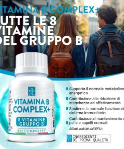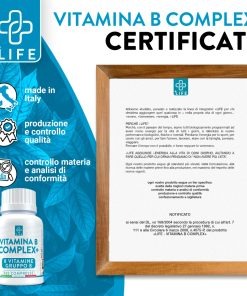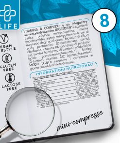 +Life Vitamina B Complex+ La maggior parte delle vitamine del gruppo B è termolabile e fotosensibile. Infatti, la cottura e la conservazione degli alimenti riducono molto il contenuto vitaminico complessivo che pensiamo di assumere. +LIFE ti fornisce il 100% del fabbisogno giornaliero di ogni vitamina B, in una semplice compressa!