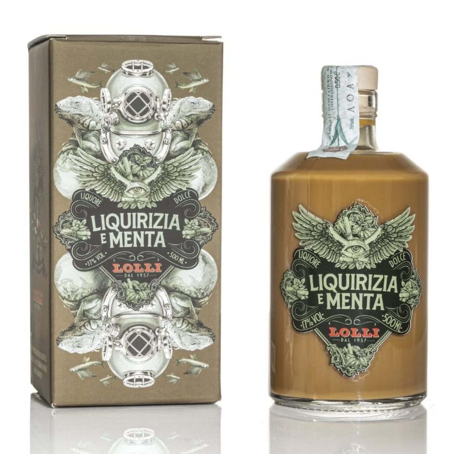 - “Liquirizia e Menta”: l’autentico aroma della liquirizia insieme alla freschezza della menta, miscelati in un liquore dal gusto intenso e rotondo. Dal sapore deciso, vellutato e rinfrescante, il liquore si distingue per il suo profumo intenso di liquirizia con sfumature di menta. Realizzato artigianalmente, senza coloranti nè conservanti, è confezionato in un’elegante bottiglia e si caratterizza per la bassa gradazione alcolica, perfetto da gustare come fine pasto ricco di gusto: sarà in grado di appagare anche i palati più esigenti. Si consiglia di consumarlo freddo. Grado alcolico: 17% Vol. Scatola in cartoncino personalizzata. 1 x Bottiglia da 500 ml.