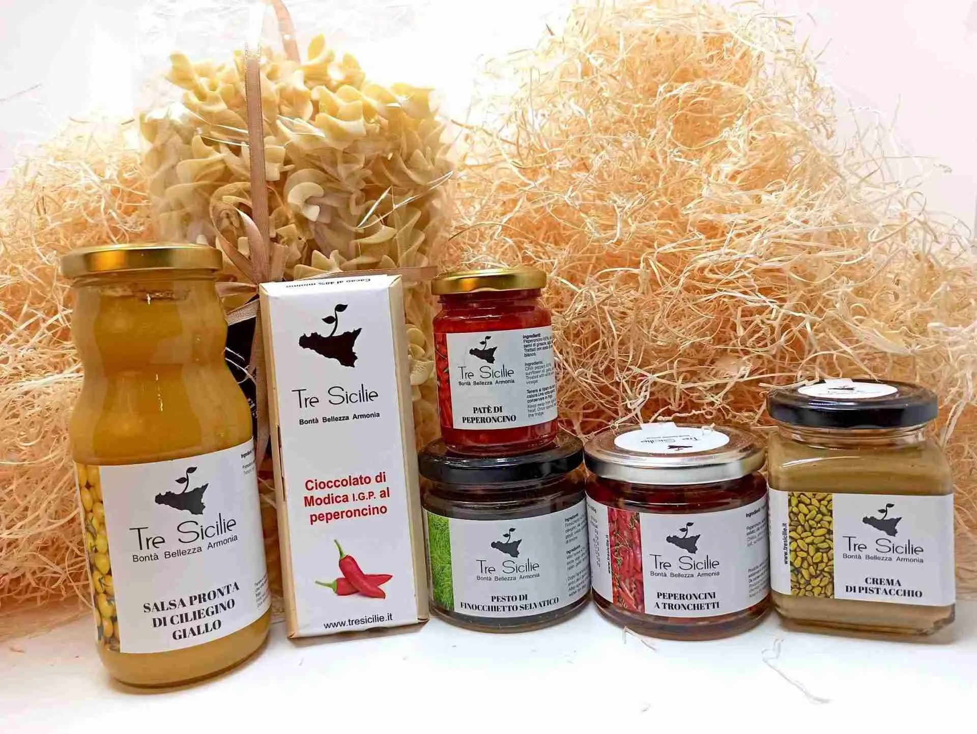Acquistando la nostra Love Box Piccantella sullo shop online, vi farete un bel regalo con dei prodotti 100% Siciliani ed artigianali, garanzia di un ottimo compromesso tra giusto prezzo e qualità. Il marchio Tre Sicilie, con la sua vendita di prodotti tipici Siciliani online, si propone come punto di riferimento per l’acquisto di prodotti artigianali comodamente da casa. Assaggia la Sicilia, prova oggi stesso i nostri prodotti Tre Sicilie!