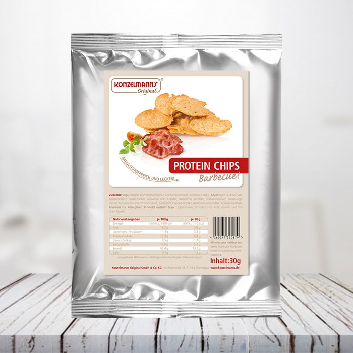 • oltre il 60% di carboidrati in meno (a basso contenuto di carboidrati / carboidrati ridotti) rispetto alle patatine convenzionali, che contengono in media oltre 50 g di carboidrati)