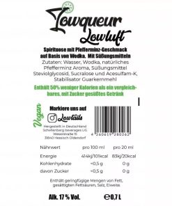 Sapevi che la maggior parte dei liquori contiene 20-40 g di zuccheri aggiunti? Probabilmente non lo sapevi, perché non troverai informazioni nutrizionali sui liquori convenzionali. Diversamente da Lowluft, qui c’è piena trasparenza e nessun carboidrato nascosto. Ecco perché è adatto per la dieta a basso contenuto di carboidrati* e cheto ! Questo liquore a basso contenuto di carboidrati* contiene meno di 0,5 g di carboidrati per 100 ml .