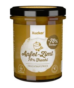 La nostra deliziosa crema spalmabile di frutta mela e cannella è addolcita con xilitolo. Con la sua dolcezza fruttata, un contenuto di frutta pieno del 74% e una fine nota di cannella, è ideale per cuocere torte e come accompagnamento a waffle o frittelle.