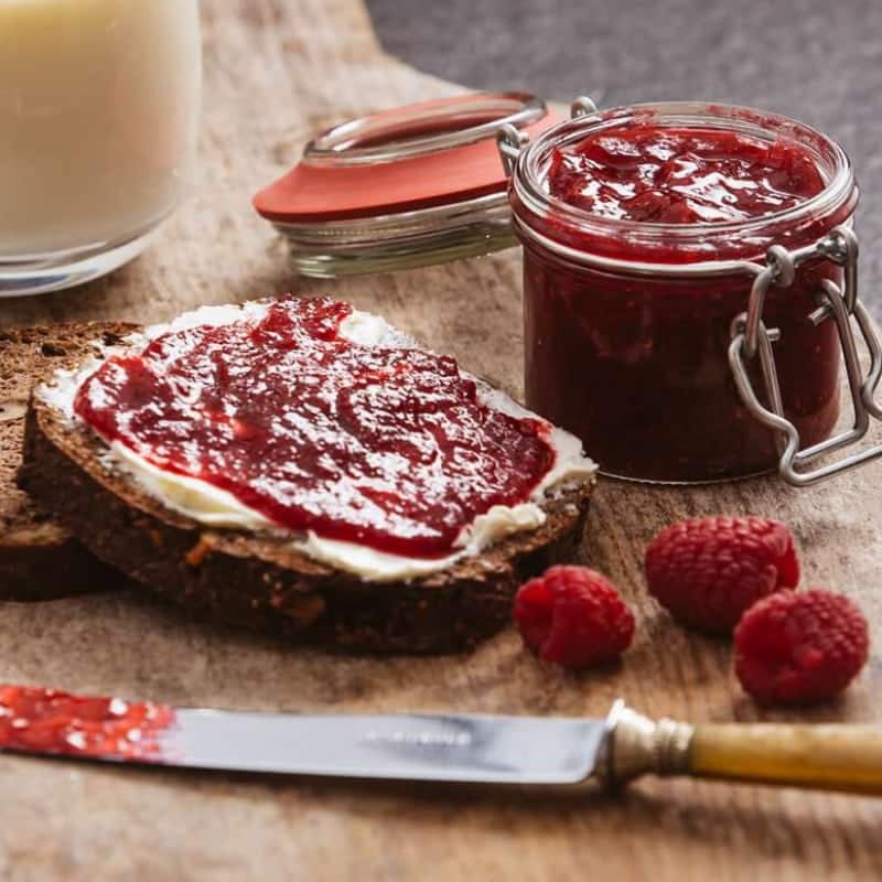 Ingredienti: Lamponi, edulcorante: xilitolo, pectina, succo di limone, citrato di calcio, sale