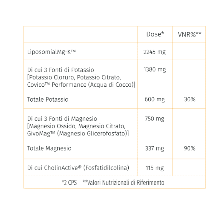 Moldes ha creato MgK Liposomiale, selezionando e unendo tre fonti di magnesio e tre di potassio e   rendendo il tutto liposomiale grazie a CholinActive®. L’unione sinergica di questi due microelementi apporta notevoli benefici per l’organismo.