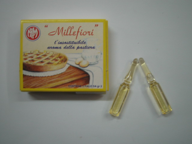 Aroma millefiori, ogni fiala e’ sufficiente per la preparazione di una pastiera di 2 kg.