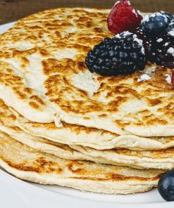 - Per i pancake senza glutine : mescolare una porzione (35 g) con 90 ml di acqua. Versare subito l’impasto in una padella unta e cuocere su entrambi i lati a fuoco medio-alto fino a doratura.