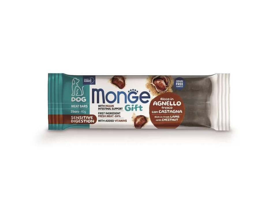Monge Gift Sensitive Digestion – Barrette Agnello e Castagna 40g | Snack per la Salute Digestiva nei Cani