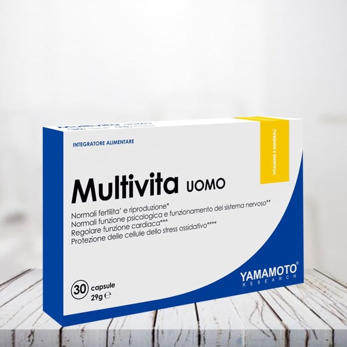 Yamamoto® Research Multivita UOMO® è un integratore alimentare di vitamine e minerali, con altri fattori nutrizionali progettato appositamente per uomini adulti di tutte le età e per il benessere del loro organismo.