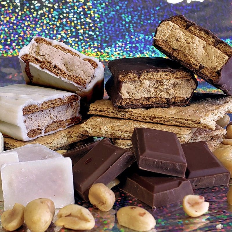 Ingredienti: Burro di arachidi (Arachidi Tostate a Secco, Idrogenati Semi di Cotone e Uva Olio, Sale, Acido Citrico e TBHQ, Graham Cracker (Farina di Frumento Arricchita, Zucchero, Sciroppo di Fruttosio, Parzialmente Idrogenato di Soia Olio, Farina Graham, Amido di Mais, Vaniglia, Bicarbonato di Sodio, Lecitina di Soia, Sale, Melassa, Coating (Zucchero, Parzialmente Idrogenato Olio di Palmisti, Cacao, Latte Scremato, Lecitina di Soia (Un Emulsionante), Sorbitano Monostearato, Polisorbato 60 e Vanillan (Un Aromatizzante Artificiale), Proteine del Siero di Latte Isolato e Sale.