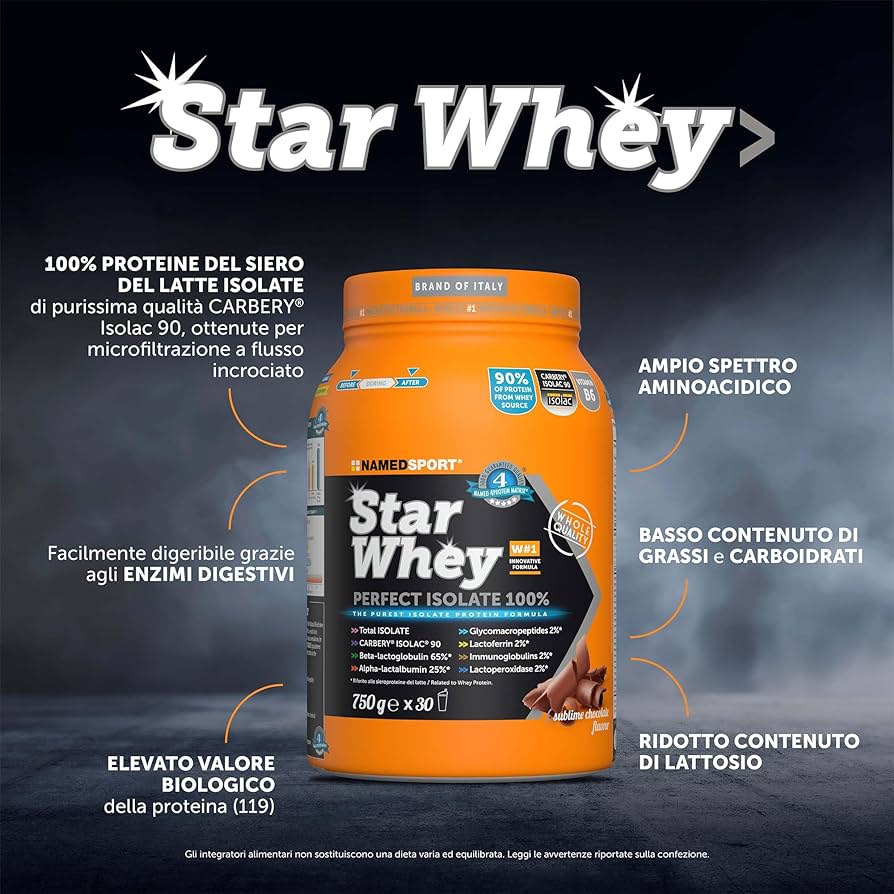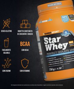 Facile da miscelare e adatto per l’uso in qualsiasi momento della giornata, Star Whey Isolate è la scelta perfetta per integrare la tua dieta con proteine di alta qualità. Scegli Namedsport per ottenere il massimo dalle tue sessioni di allenamento e migliorare le tue performance con un integratore efficace e gustoso.