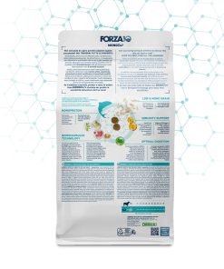 Componenti analitici: proteine grezze – 24%, grassi grezzi – 13%, ceneri grezze – 9,5%, fibregrezze – 4%, calcio – 1,2%, fosforo – 0,9%, potassio – 0,6 %, sodio – 0,4%, acidi grassi Omega3 – 0,64%, acidi grassi Omega 6 – 2,78%, valore energetico 3398 (kcal/kg).