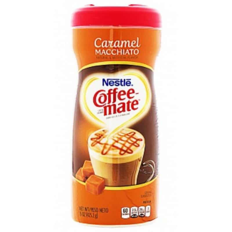 Ingredienti: Zucchero, olio vegetale idrogenato (cocco, palmisti, soia ), sciroppo di mais solido, caseinato di sodio (dal latte ), antiossidante (E340), aroma naturale e artificiale, emulsionante (E471), agente antiagglomerante (E554), sale.
