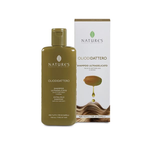 Olio di Dattero Shampoo Ultradelicato Nature’s è in confezione da 200 ml.