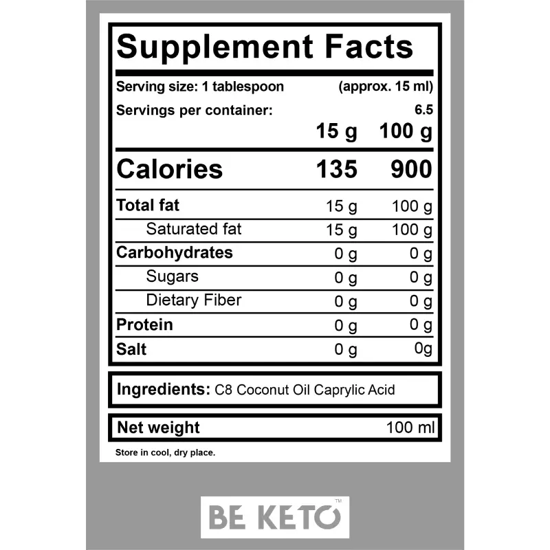 L’olio MCT C8 al 100% è disponibile in una bottiglia da viaggio da 100 ml! La bottiglia è riempita con olio C8 MCT puro e insapore, che produce la massima quantità di chetoni nel tuo corpo. Viene rapidamente trasformato dal fegato in corpi chetonici, che forniscono un’eccellente fonte di energia. È l’MCT (trigliceridi a catena media) più desiderabile grazie alla sua elevata biodisponibilità e alle catene di carbonio molto corte. 100% C8 MCT Oil 100ML ti permetterà di mantenere uno stato di chetosi in qualsiasi parte del mondo!