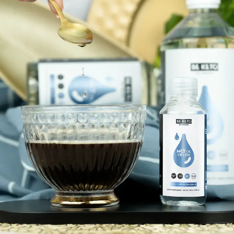 MCT Oil C8 + C10 formato da viaggio è una fonte di alta qualità da 100 ml di trigliceridi a catena media (MCT) che supporta la produzione di corpi chetonici nel corpo. MCT Oil C8+C10 formato da viaggio ti consente di mantenere uno stato di chetosi in qualsiasi parte del mondo! Gli MCT bypassano il processo digestivo standard e vanno direttamente al fegato, fornendo effetti entro pochi minuti dal consumo. Aumentano i livelli di energia e riducono la sensazione di fame. Ideale per le persone che conducono uno stile di vita frenetico. Non è necessario seguire una dieta cheto o a basso contenuto di carboidrati per integrare con Olio MCT C8 + C10. È perfetto se hai bisogno di un apporto energetico rapido e stabile o vuoi frenare l’appetito. MCT OIL sempre con TE!