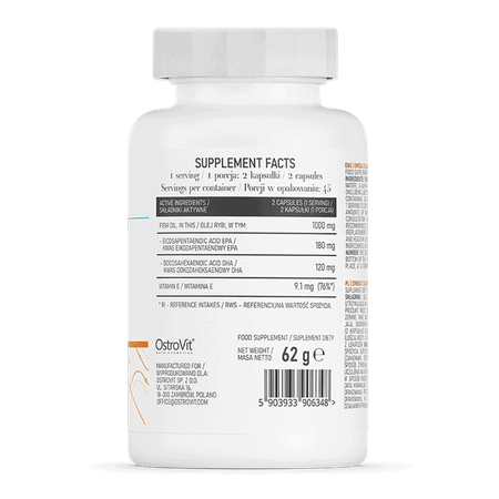 Inoltre, l’acido eicosapentaenoico (EPA) e l’acido docosaesaenoico (DHA) contribuiscono al normale funzionamento del cuore e gli effetti benefici si verificano con il consumo di 250 mg di EPA e DHA al giorno. A sua volta, la vitamina E utilizzata nel preparato aiuta a proteggere le cellule dallo stress ossidativo