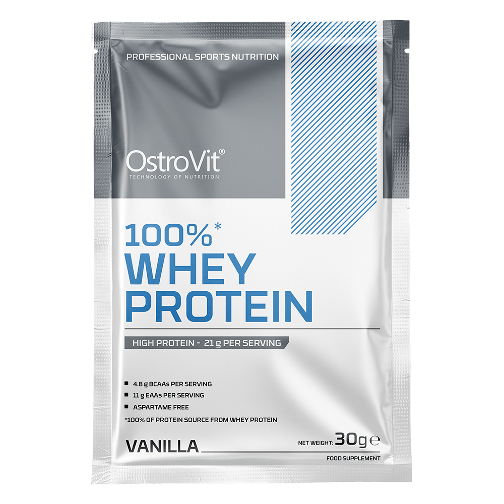 Si possono distinguere tre tipi di proteine del siero del latte: concentrato di proteine del siero del latte (WPC), idrolizzato di proteine del siero del latte (WPH) e isolato di proteine del siero del latte (WPI). OstroVit 100% Whey Protein utilizza concentrato di proteine del siero del latte, che si distingue per una buona solubilità e un’eccellente assimilabilità.