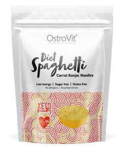 OstroVit Diet Spaghetti Carote Konjac Noodles è un’alternativa perfetta e più sana alla classica pasta di grano. Grazie ad una polvere di carota, le tagliatelle offrono un gusto dolce delicato e un colore giallo appetitoso. Il prodotto assorbe perfettamente il sapore e l’aroma degli additivi in modo da potersi armonizzare con i vari ingredienti. Gli spaghetti konjac alla carota sono pensati per tutti coloro che: