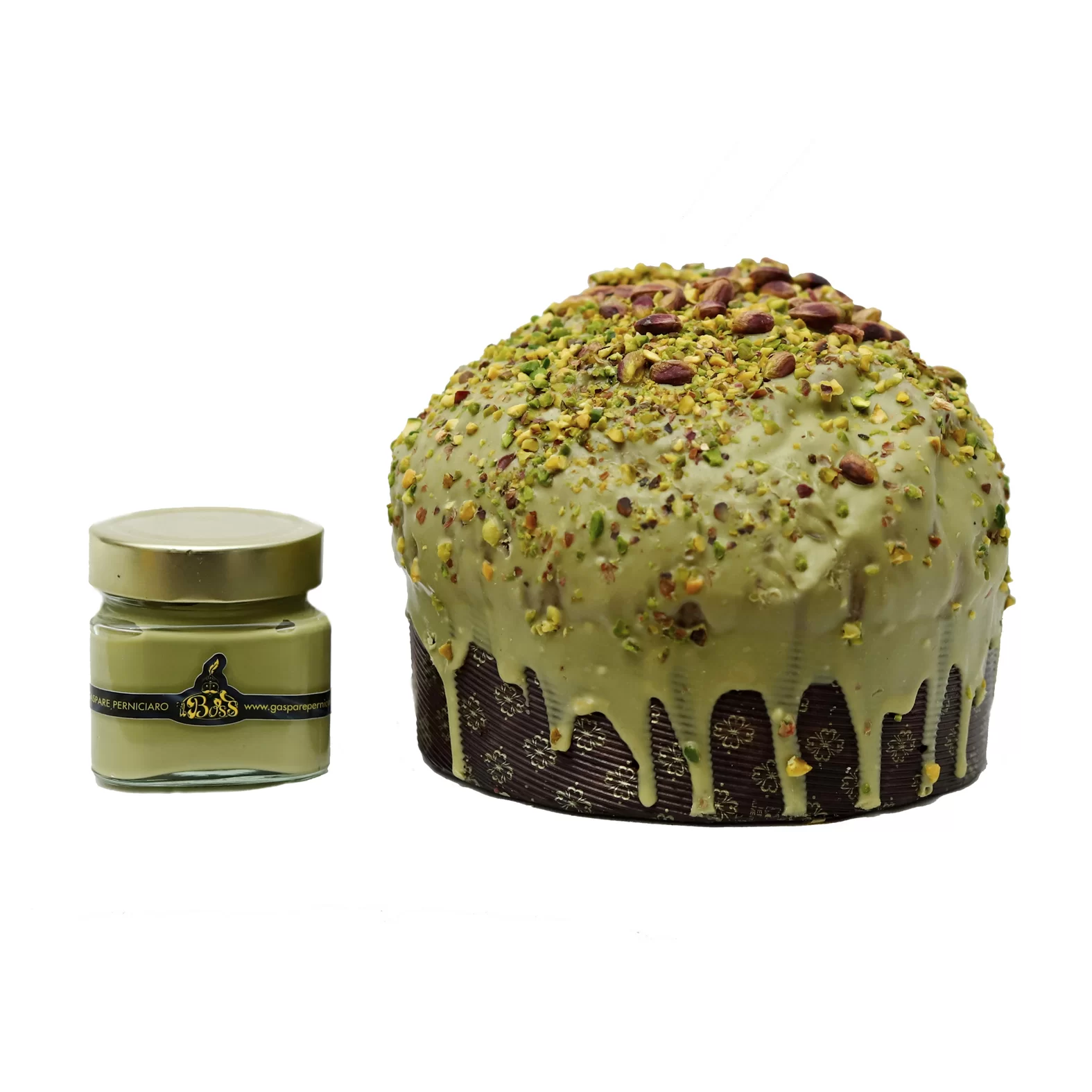 Il Panettone al Pistacchio è un dolce Artigianale Siciliano gustosissimo. Dolce da forno fornito di una meravigliosa crema spalmabile al pistacchio, ricoperto con glassa di cioccolato al Pistacchio e granella di pistacchio verde. Il panettone è un tipico dolce Natalizio che viene consumato soprattutto durante le festività di Natale. Saprà sicuramente conquistare i vostri ospiti più golosi. Il nostro laboratorio di pasticceria utilizza solo Pistacchio siciliano : tra questi si annota per qualità superiore alla media quello di Bronte e quello raccolto a Raffadali. Il nostro Panettone Artigianale al Pistacchio è realizzato con farine isolane ed impastato con uova del territorio che hanno superato tutti i processi e i parametri di qualità per assicurare il nostro risultato ottimale, il tutto senza coloranti e conservanti. Contiene: 1 vasetto di deliziosa crema al pistacchio salato spalmabile da 220g. Il panettone è realizzato utilizzando la tecnica tradizionale che comprende una lievitazione di circa 72 ore, pertanto la struttura è morbida e setosa. La base è rotonda ed uniforme. Il nostro panettone al Pistacchio è morbido e lievitato al naturale. La grande differenza rispetto ad altre versioni pseudo industriali potrebbe farlo il nostro lievito madre che viene rigenerato ogni giorno dal 1995 data in cui il fondatore inizia questa avventura in pasticceria. Un segreto aziendale custodito gelosamente insieme agli aromi creati artigianalmente con agrumi, con scorzette essiccate e frutti della terra siciliana. Profumo intenso e gradevole al taglio si presenta fragrante senza grumi o bolle, inoltre al palato si presenta morbido e soffice. Una volta assaggiato ritornerete ogni anno a fare gli acquisti Natalizi da noi. La nostra produzione avviene in un piccolo laboratorio di 250mq, non siamo un Industria . Noi siamo produttori, cosa da non sottovalutare visto che il 90% delle aziende che vende panettoni artigianali siciliani online nella realtà sono dei commercianti rivenditori di prodotti diversi. Acquistare dal Boss Gaspare Perniciaro è come andare dal pasticcere sotto casa. La storia dei nostri luoghi e la terra in cui operiamo che ci dona queste meraviglie di ingredienti naturali fa il resto e la differenza. Panettone Artigianale Siciliano al Pistacchio con deliziosa Crema al pistacchio da spalmare e farcire da 220g. Da gustare durante il periodo Natalizio! I nostri panettoni non hanno mai lotto di produzione anteriore al mese di novembre poiché’ i panettoni artigianali senza conservanti non possono essere prodotti ad agosto o a settembre in quel caso trattasi di falso d’autore. E’ davvero un opera d’arte non vi rimane che acquistarlo! Il Panettone con farcitura fai da te pesa Kg 1,100 di seguito: (panettone 880g + vasetto di crema spalmabile al pistacchio di 220g). Fratello gemello del panettone al pistacchio si differenziano solo nella crema spalmabile in dotazione. Infatti in questo panettone troverete la “crema al pistacchio salato” quindi meno stucchevole dell’altra versione ma pur sempre una crema a base dolce. Questo panettone all’interno non è farcito quindi dovrete spalmare la crema che troverete in dotazione sulle fette cosi sarà possibile personalizzare il dosaggio della crema a proprio gusto. La quantità di crema è abbastanza per soddisfare la normale golosità, se invece sai di essere un super goloso potrai comunque aggiungere un vasetto aggiuntivo di crema spalmabile cosi da creare l effetto “wahoo”, clicca di seguito: crema al pistacchio salato.