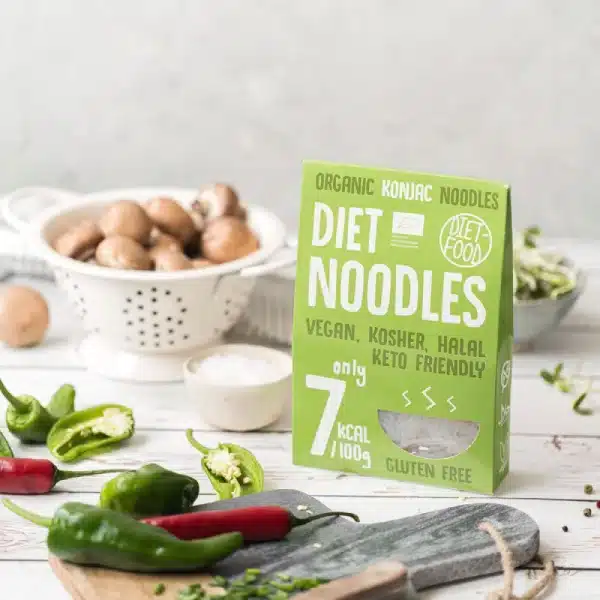 Se ti preoccupi della forma e della salute, stai cercando un’alternativa salutare alla pasta, che è dietetica, senza glutine ed extra gustosa – questo prodotto fa per te. Fatto da una pianta coltivata per migliaia di anni in Cina e in Giappone – Konnyak Glukomannan. Contiene solo 7 kcal / 100 g di prodotto. Il prodotto è kosher, ideale per i vegetariani.