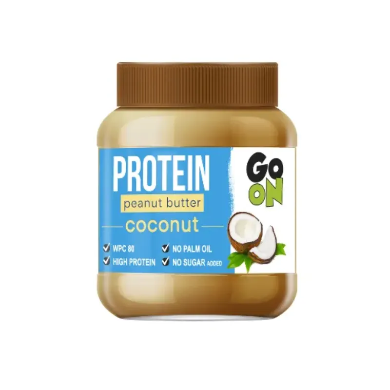 Peanut Butter GO ON cocco  è una deliziosa crema di noci arricchita con proteine ​​WPC (proteine ​​complete)  di altissima qualità  . Sentite un tocco di esotismo nei pasti sani!