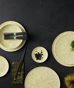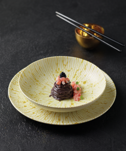 Il piatto fondo Golden Ray da 22 cm è un modo davvero speciale per presentare i tuoi piatti. Immagina di portare in tavola un pezzo che sembra brillare di luce dorata! Le sue decorazioni ricordano i raggi del sole, con colori che vanno dal giallo all’oro e che si espandono dal centro verso i bordi. Questo piatto è perfetto per far risaltare le tue creazioni culinarie, aggiungendo un tocco di eleganza e originalità.