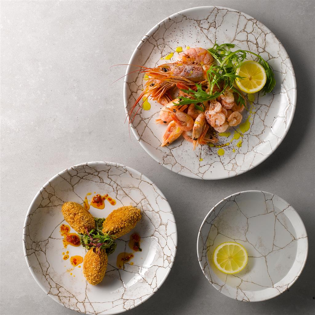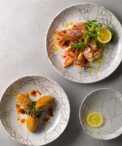 Con il Piatto Piano Coupe Agate Grey CM.26 della linea Studio Prints Kintsugi di Churchill, potrai portare in tavola un tocco di raffinata eleganza e tradizione. Ispirato all’arte giapponese Kintsugi di riparare la ceramica rotta, questo piatto presenta un intricato design craquelé che crea una texture sottile e reattiva, rendendo ogni pezzo unico e irripetibile. Il decoro sotto smalto garantisce una maggiore resistenza all’usura e ai graffi, rendendo il piatto adatto ad un uso quotidiano anche in contesti professionali. La forma coupe del Piatto Piano Coupe Agate Grey CM.26 lo rende perfetto per servire antipasti, primi piatti o dessert, mentre la sua dimensione di 26 cm lo rende versatile e adatto a diverse mise en place. Scegli il Piatto Piano Coupe Agate Grey CM.26 e aggiungi un tocco di fascino senza tempo alle tue tavole, valorizzando le tue creazioni culinarie con uno stile unico che unisce tradizione e modernità.